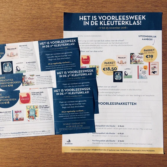 Opmaak brochure Kinderboeken i.o.  Uitgeverij De Eenhoorn